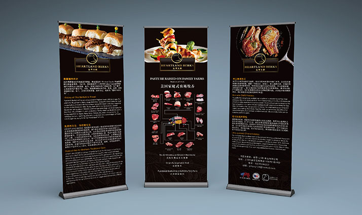 對(duì)于生肉類品牌的設(shè)計(jì),這還是第一次接觸,所有的豬肉全部來(lái)自美國(guó)農(nóng)場(chǎng),美國(guó)農(nóng)場(chǎng)有一個(gè)統(tǒng)一的特色,紅色的房子,白色的屋頂。真的搞不懂為什么房頂要弄成白色的,綠色的不是更好,最起碼從天空看下來(lái)能和草地莊家連成一體。還有一個(gè)糧倉(cāng),我看著更像是國(guó)內(nèi)的高壓水桶,還有一些機(jī)械設(shè)備,這些都是農(nóng)場(chǎng)最基本的配置,然后就是無(wú)邊的莊家和果園,很是壯觀,他們養(yǎng)殖的黑豚豬都是養(yǎng)在木頭的圍欄里,這個(gè)木頭的圍欄很大,所以,這些豬屬于散養(yǎng)狀態(tài)。就像小時(shí)候家里養(yǎng)的豬,都屬于散養(yǎng)狀態(tài)的。你可能難以相信,這里豬伙食很好,幾乎不喂食豬飼料,以農(nóng)場(chǎng)的谷物和蔬菜還有水果為主。黑豚豬是一個(gè)特殊的品種,四只豬蹄子是白色的,豬的嘴巴也是白色的,還有尾巴,這是這個(gè)品種的特征。其肉質(zhì)帶有大理石的花紋,就像牛肉的花紋,口感你吃了才能感受到。