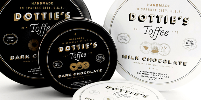 “多蒂的太妃糖是一個慶祝一切熟悉的甜蜜。點開始制作自己的太妃糖1976和她愛她的手藝是會傳染的。她的孫子尼克進行太妃糖制作傳統的這些天,他賣到全國范圍內的零售商。我們創造了一個品牌是甜的,復雜多變的太妃糖本身既懷舊與當代。明亮,過渡色對比的黑色,白色和灰色以及大膽,簡單的文字定義的品牌在包裝,抵押和網站。