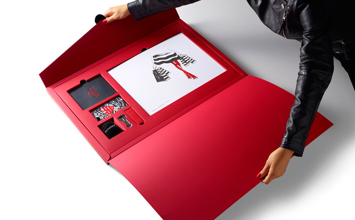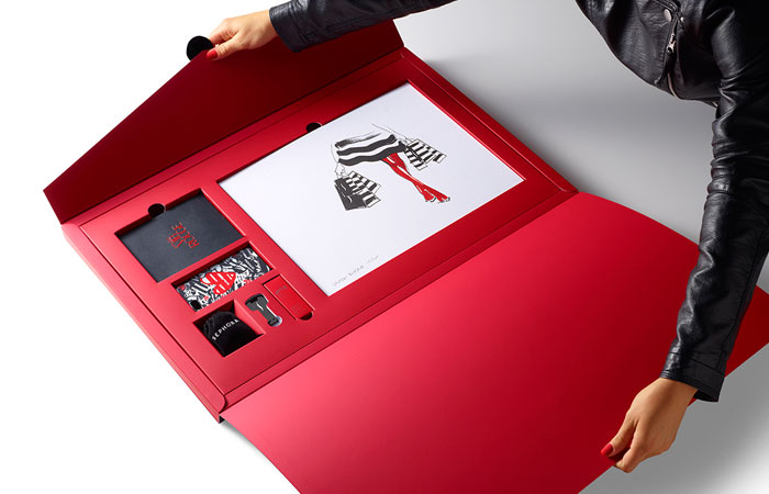 在前面的每一個圓滑,黑色,16“x24”信封,是收件人的姓名寫在紅色的書法。內(nèi)部是大量柔軟的胭脂紅,每按試劑盒項目很好地存放在自定義威爾斯。包括一個VIB胭脂歡迎包,一個全尺寸的咬唇膏在自定義胭脂紅色燈罩,絲芙蘭品牌iPhone案件和耳機,和限量版編號的版畫藝術(shù)家路維薩·布菲特簽署。新聞稿本身被加載到一個光滑的黑色USB驅(qū)動器在一個關(guān)鍵的形狀。從絲芙蘭個人歡迎信放在上面。”